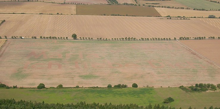 Autor: khhAuf der einen Seite wollte er für den heutigen Tag der öffentlichen Präsentation des XXL-Liebesbrief, dem neuen Boden am Kyffhäuser natürlich schönes Wetter. Auf der anderen Seite sah er etwas neidvoll Richtung Harz nach Norden, wo sich gerade Regenwolken entleeren, wie vom Kyffhäuserdenkmal aus schön zu beobachten war. Denn der fehlende Regen hat die Saat doch recht dünn aufgehen lassen, so dass das vom Bauern gefräste Bodenbild noch nicht so richtig zur Geltung kommt.