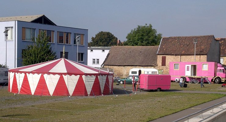Autor: khhAuf dem Festplatz bei Parken im Park in Artern hat eine Puppenbühne aus Sachsen-Anhalt ihr Quartier aufgeschlagen. In Anlehnung an einen bekannten Werbeslogan verkünden die Plakate Kasper macht die Kinder froh und Erwachsene ebenso.