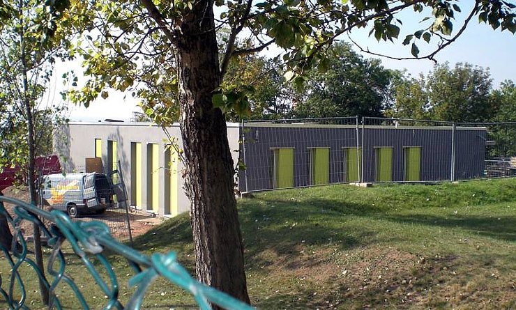 Autor: khhDie einst Weißes Haus am Berge genannte Villa in der Lindenstraße wird umgebaut und hinter ihr entsteht ein großes dreigeschossiges Gebäude mit viel Beton (unser Foto). Beide sollen einmal den Kommunalen Versorgungsverband Thüringens aufnehmen, der gegenwärtig seinen Sitz in einem zu eng gewordenen benachbarten Gebäude hat. Wir berichteten bereits. Von weitem sieht man nicht, welche Ausmaße der drei-etagige Neubau von immerhin 55 mal 19 Metern haben wird. Zur Stadt hin wird er von der Villa, zuletzt als Schülerfreizeitzentrum genutzt, und großen Bäumen weitgehend verdeckt.