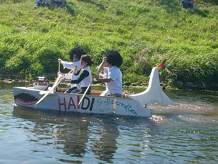 Autor: khhIm Rahmen des Feuerwehrfestes der Feuerwehr Mitte von Sondershausen finden seit einigen Jahren auch Wettkämpfe auf der Wipper statt. Höhepunkt dabei ist natürlich das Wipperbootrennen. Neben Kraft, Geschicklichkeit ist natürlich auch Kreativität gefragt. Denn die Boote müssen selbst gebaut werden. Und selbst da scheiden sich die Geister. Auf der einen Seite schon fast professionell aufgemotzt mit viel Werbung am Boot, wie der Schwarze Hai (Racing Team) von der SV Glückauf Sondershausen und dem krassen Gegensatz, dem Boot der Jechapiraten. Dieses Boot wurde von den Kindern des Haus der Jugend in Jecha ohne Sponsoren selbst gebaut.