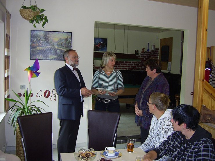 Der zweite Lottomittelbescheid über 1.400,- € wurde anschließend um 16:15 Uhr an den Kreisjugendring Kyffhäuserkreis e.V. zugunsten des Mehrgenerationenhauses in Roßleben übergeben, um die Anschaffung von Möbeln mitzufinanzieren. Den Förderbescheid nahm die Leiterin Susanne Kammlodt entgegen.