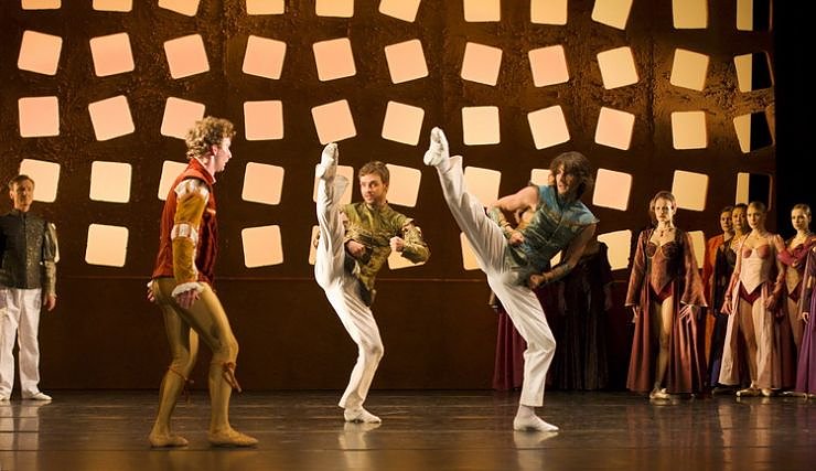 Vielleicht wäre Mr. Allen seine Komplexe in der heute Abend erstmalig in Nordhausen aufgeführten Inszenierung des Prokofjewschen Balletts Romeo und Julia losgeworden. Choreograph Steffen Fuchs gelang es im verblüffend einfachen und praktikablen Bühnenbild von Wolfgang Kurima Rauschning eine klar strukturierte und leicht nachvollziehbare Geschichte zu erzählen. Er benutzte dabei die Ausdrucksformen des modernen Tanztheaters und so wurde dem Premierenpublikum von Capoeira-Einlagen bis inniglich-anschmiegsamen Duetten alles geboten.