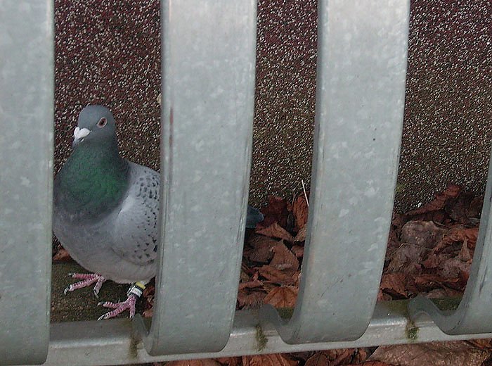Autor: khhSo handelte auch diese gleich an beiden Füßen beringte Taube. In einer Hausecke mit viel Laub suchte sie in Sondershausen Schutz vor der beißenden Kälte.