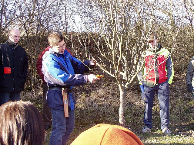Der erste Grundkurs mit Herrn Rintisch findet am Samstag, dem 17.Januar um 14 Uhr statt. In den gut zweieinhalb Stunden Kursdauer wird die Theorie des Baumschnittes an jungen und alten Gehölzen vermittelt und dann auch am Objekt erprobt. Ein alter Apfelbaum wird im Anschluß als Model eines Verjüngunsschnittes herhalten. Eine Mappe mit den Lehrinhalten (5€') kann käuflich erworben werden.