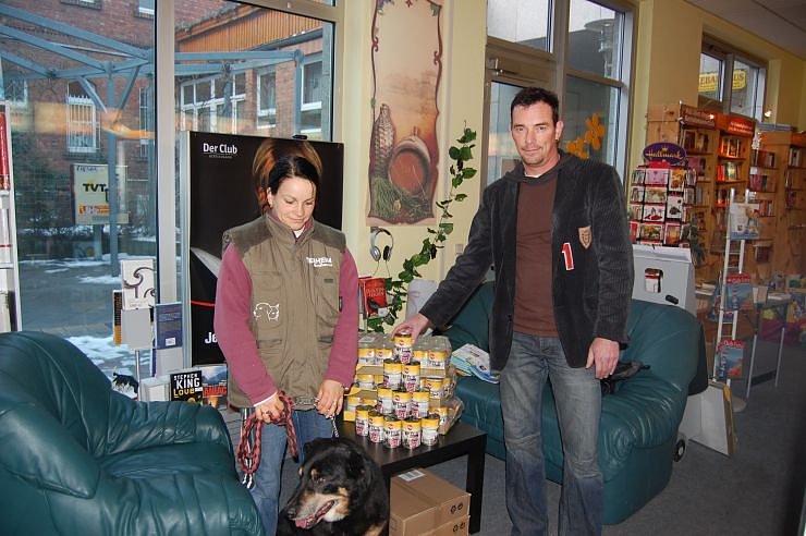 Über 85 Dosen Hundefutter für die herrenlosen Vierbeiner kamen bei der Aktion zusammen. Diese wurden heute persönlich von der Tierheimleiterin Cornelia Knust und ihrem tierischen Begleiter Berry abgeholt.