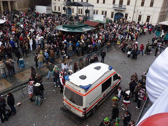 Der nachfolgende Rettungswagen gehörte allerdings nicht mit zum Rosenmontagsumzug. Auch wenn es nicht so gut zu sehen ist, der Rettungswagen war schon gegen Mittag im normalen Einsatz, weil jemand am Rande des Rosenmontagsumzuges etwas passiert ist. Bleibt nur zu hoffen, daß nicht all zu viel passiert ist, und nicht gar jemand ernsthaft verletzt wurde. Zumindest liegen kn keine Einzelheiten vor.