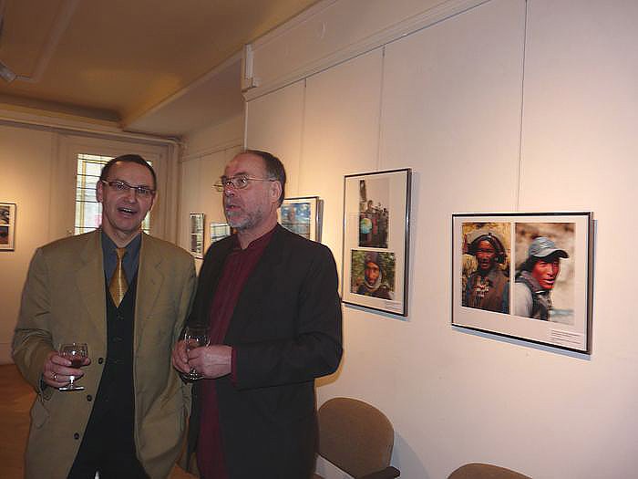 Nepalreisende unter sich. Detlef Koch und der 1. Beigeordnete des Landrates, Georg Schäfer, tauschen Informationen aus. Schäfer betonte allerdings, dass er sich nicht so weit außerhalb der Touristengebiete aufgehalten hatte, trotzdem aber viel Armut sah.