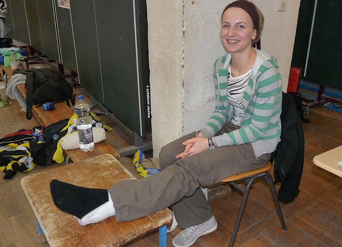 Maria Wiegand gehört auch zur 1.Mannschaft musste aber verletzungsbedingt die Saison beenden. Sie hatte sich beim letzten Wettkampf beim Bodenturnen an den Bändern verletzt, war aber zur moralischen Unterstützung in die Halle gekommen.
