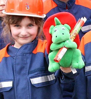 Seine Einsatzmöglichkeiten sind vielfältig: Ob als kleiner Helfer bei der Brandschutzerziehung, als Tröster bei Feuerwehreinsätzen, als Maskottchen bei Veranstaltungen, Grisu wird immer für ein Lächeln sorgen.