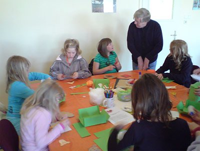 Ihr kreatives Geschick stellten sie dann beim Basteln von Osterkörbchen oder dem Anfertigen von Traumfängern unter Beweis. Die Kinder wurden außerdem mit der Technik des Nassfilzens vertraut gemacht und konnten so einen selbst gefertigten Schlüsselanhänger aus Wolle mit nach Hause nehmen.