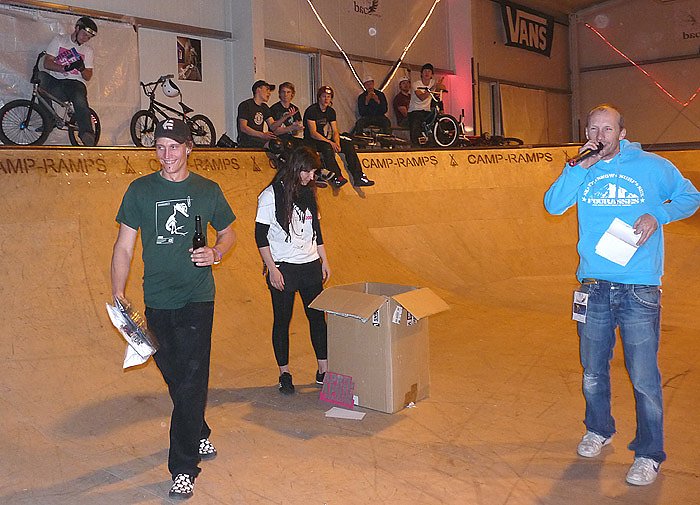 Der amtierende Deutsche Meister (und Ex-Weltmeister von 2004) Tobias Wicke war natürlich der erklärte Favorit dieser Veranstaltung für BMX-Fahrer. Aber selbst spektakuläre Tricks, wie im Video zusehen, reichten nicht um hier gewinnen zu können. Als sein letzter Jam gar mit einem Sturz und ein paar blauen Flecken endete, war der Weg für einen anderen Gewinner frei.