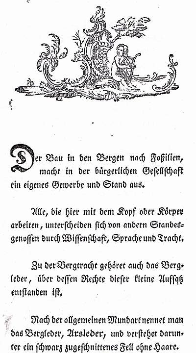 Die beigefügten Bilder zeigen das Titelblatt des Heftes und einen Auszug aus einem Aufsatz aus dem Jahre 1774 mit dem Titel: "Aufsatz von dem Rechte des Bergleders" von C.W.F. Schmid. Biographische Angaben sind zum Verfasser im Heft enthalten.