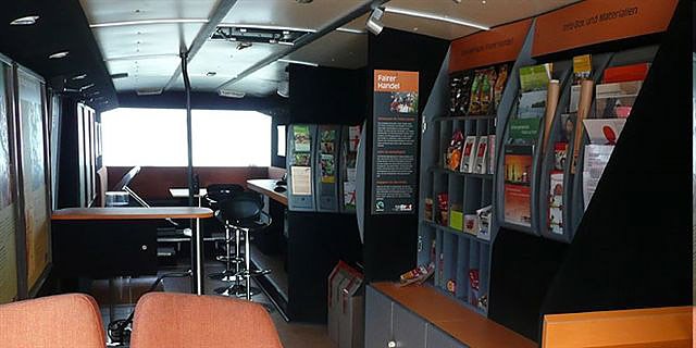 Das Brotmobil ist ein ehemaliger Reisebus, der zu einem Info- und Ausstellungsbus umgestaltet wurde. Bereits die auffällige Außengestaltung macht anschaulich auf die Anliegen von Brot für die Welt aufmerksam. Doch auch der freundlich gestaltete Innenraum bietet vielfältige Möglichkeiten sich zu entwicklungspolitischen Themen zu informieren. Eine Sitzecke lädt zum Verweilen oder zu Gesprächen ein. Bei gutem Wetter stehen zudem interessante Spielaktionen für Kinder und Jugendliche zur Verfügung.