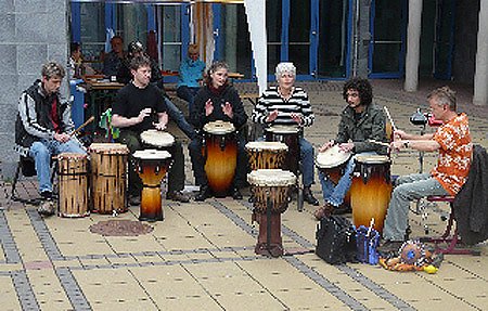 Weithin zu hören war der Höhepunkt des Festes, der Auftritt der Trommlergruppe Amlima aus Nordhausen. Wie dessen Leiter Klaus Hagedorn im Gespräch erklärte, heißt das Wort frei aus einer westafrikanischen Sprache übersetzt: Wunder. Zum Glück war es nachmittags trocken, und der heftige Wind im Östertal war im Schulhof doch nicht ganz so toll zu spüren, als auf dem höher gelegenen Sportplatz. In der Bildergalerie hat kn einige der Aktivitäten eingefangen.