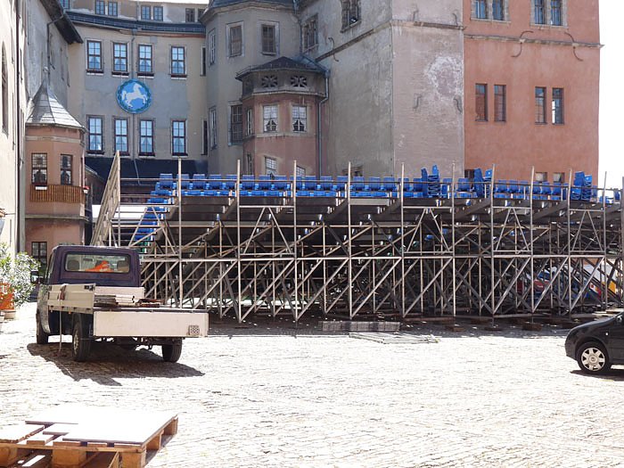 Am vergangenen Samstag wurde im Schlosshof Sondershausen schon kräftig gebaut. Die Tribüne ist fast aufgebaut.