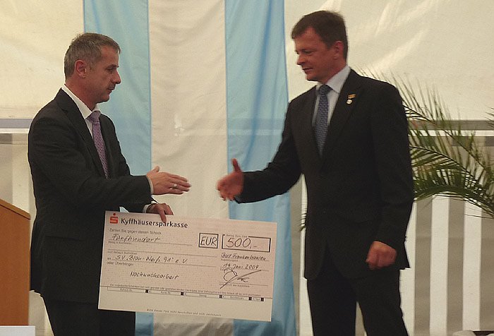 Im Auftrag vom Vorstandsvorsitzender der Kyffhäusersparkasse, Karl-Heinz Langhorst, übergab Harald Mückenheim einen Scheck über 500 Euro.