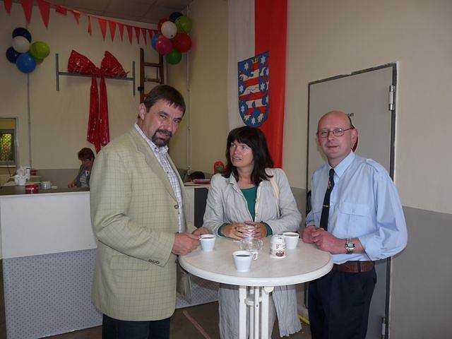Aber nicht nur gefeiert wurde in Großfurra. Am Kaffeetisch erwischt wurden Bürgermeister Joachim Kreyer (CDU), seine 1. Beigeordnete Cornelia Kraffzick (SPD) und Wehrleiter Carsten Herbig bei Fachgesprächen zu Fragen der Feuerwehr.