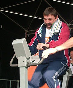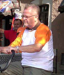 Fotos: Die beiden Bürgermeister Wolfgang Koenen (Artern), oben, und Joachim Kreyer (Sondershausen) beim Radeln im Vorjahr.