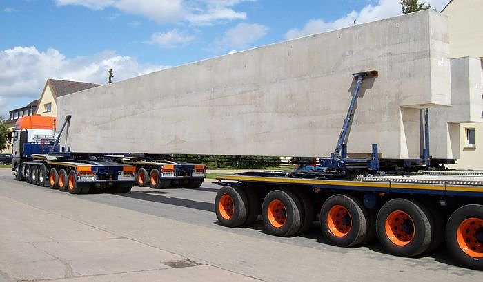 Deren Träger haben ein Gewicht von rund 110 Tonnen. Um diese schweren Betonfertigteile herstellen und transportieren zu können, wurde die Betonage in zwei Abschnitte unterteilt. In einem ersten Abschnitt werden die Träger als Betonfertigteil mit einem Gewicht von 81 Tonnen in Heringen produziert. Die Reduzierung des Gewichts erreichen die Heringer Betonteilfertigbauer durch konstruktiv vorgesehene Hohlräume, die nach dem Transport nach Nordenham vor Ort mit Beton ausgefüllt werden.