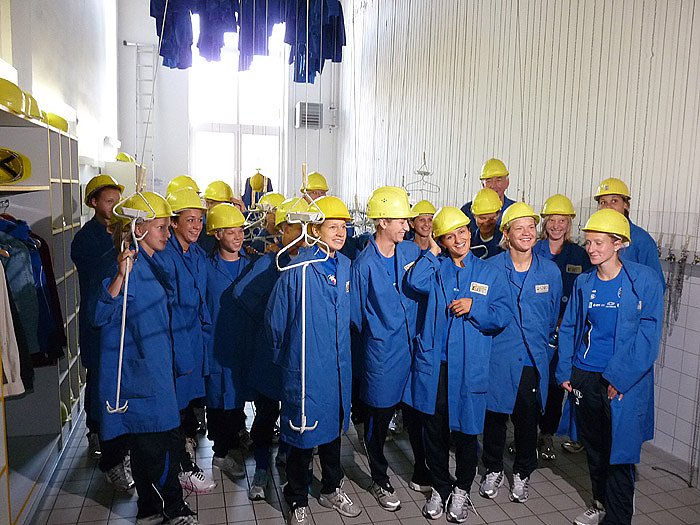 Heute Vormittag machte der deutsche Frauenfußballmeister 1. FFC Turbine Potsdam Station in Sondershausen, aber nicht auf dem Rasen, sondern gut 600 m tiefer im Erlebnisbergwerk. Morgen Spiel in Kelbra...