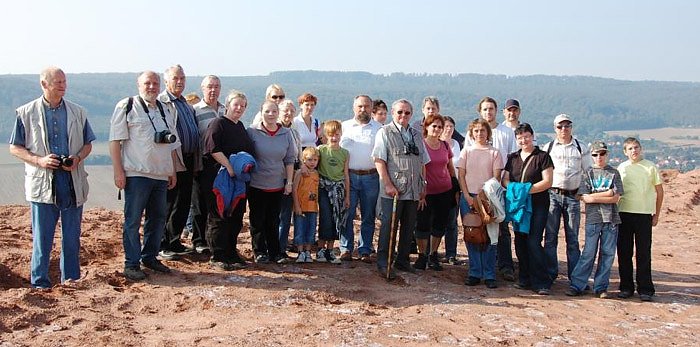 Ziel war die Kalirückstandshalde, die in einer drei stündigen Wanderung durch Überwindung von zirka 110 Höhenmetern bis zum Gipfel erklommen wurde. Im Gegensatz zum Vorjahr konnte die Wanderung bei strahlenden Sonnenschein und angenehmen Temperaturen durchgeführt werden.