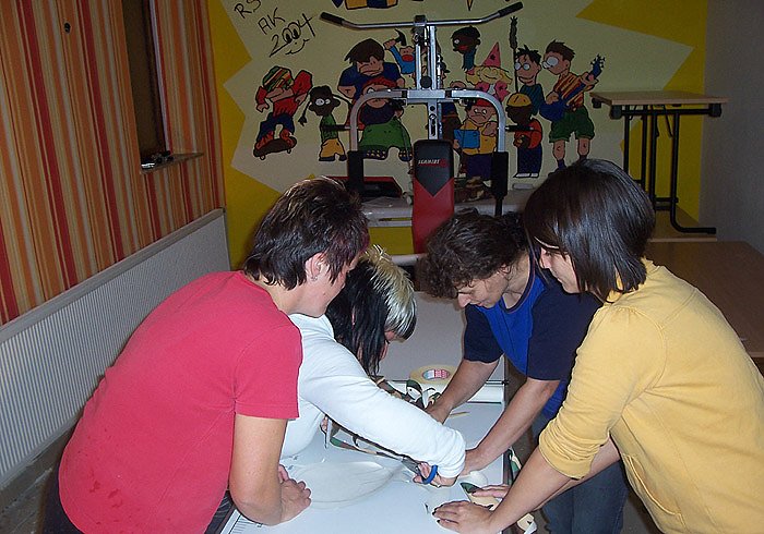 Während der letzten Wochen konnte die Projektgruppe unter Anleitung eines erfahrenen jungen Mannes einen Raum im "DOMizil" komplett verschönern. Die Tapezierkunst ist also kein unbekanntes Terrain für die Frauen mehr. Bevor die Wände mit neuer Tapete bekleistert werden konnten, musste die alte runter. Die Decke wurde neu geweißt, zerstörte Gipskartonwände wurden erneuert und Schandflecke retuschiert. Jetzt erstrahlt der Raum im neuen Glanz und wird im November für die Kinder bereitgestellt.In den nächsten Wochen beschäftigt sich die Gruppe mit der Bearbeitung von Holz. Aus Sperrholzplatten soll ein Puppentheater entstehen. Dabei wird nicht nur der Umgang mit Stich- und Kreissäge geübt, die Frauen werden auch Lacke und Farben aussuchen und auftragen, sowie einen Vorhang aus Stoff zusammennähen. Das Puppentheater wird dem "DOMizil" zur Verfügung gestellt, damit die Kinder ihre eigenen Vorstellungen vorführen können.