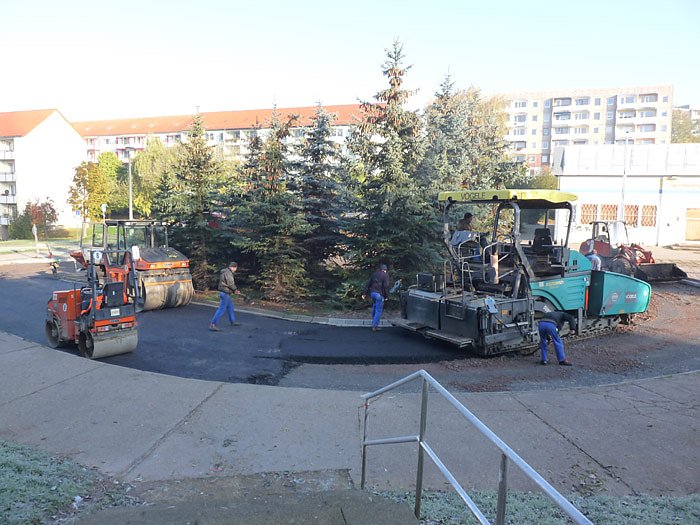 Die in diesem Rahmen durchgeführten Baumaßnahmen konnten vom Bauhof in eigener Regie durchgeführt werden. Das abschließende Aufbringen der Schwarzdecke ist aber mit der vorhandenen Technik des Bauhofes nicht machbar. Dazu musste eine Spezialfirma ran.