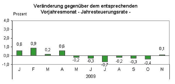 Im Bereich Verkehr ziehen die Preise sowohl im Vergleich zum Vormonat (0,8 Prozent) als auch im Jahresvergleich (2,0 Prozent) wieder an. Spürbar wahrgenommen, die Verteuerung der Kraftstoffpreise um 3,4 Prozent gegenüber dem Vormonat Oktober und um 3,8 Prozent im Vergleich zum November 2008.