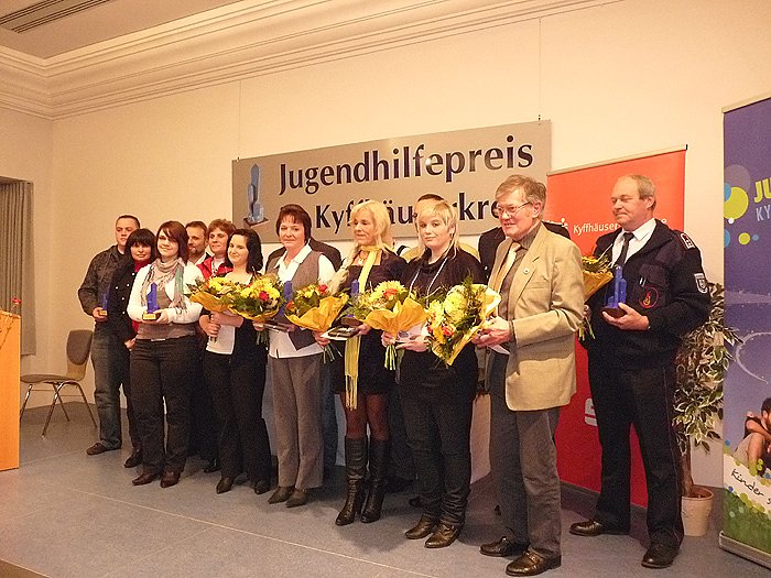 Seit dem Jahr 2001 führt das Jugendamt gemeinsam mit dem Kreisjugendring des Kyffhäuserkreises e.V. jährlich eine Auszeichnungsveranstaltung für Ehrenamt in der Jugendhilfe durch, in der bis zu 10 Personen, Vereine oder Initiativen für ihr geleistetes ehrenamtliches Engagement mit dem blauen Kristall" und einer Geldprämie ausgezeichnet werden. Drei Jahre lang erhielt der Kyffhäuserkreis ein projektbezogene Förderung über das Bundesministerium für Familie, Senioren, Frauen und Jugend. Seit 2004 wird der Jugendhilfeempfang aus Landesmitteln und der Kyffhäusersparkasse finanziert. Georg Schäfer stolz, wir mussten keine Gelder aus dem Kreishaushalt zuschießen. Der Dank für die gute Vorbereitung ging an das Jugendamt (Sabine Bräunicke und den Kreisjugendring des Kyffhäuserkreises e.V., Cornelia Naumann.