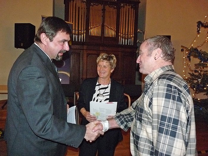 Sondershausen Bürgermeister Joachim Kreyer würdigte in seiner Laudatio die Anstrengungen der Familie Meixner aus Schernberg, Die Stadtwerke Sondershausen würdigten die Leistungen mit einer Aufmerksamkeit.