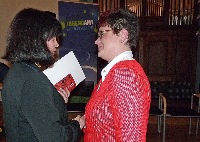 Zur Unterstützung der Leiterin des Sozialen Dienstes im Kyffhäuserkreis, Jutta Gebauer, wurde im Landratsamt eine weitere Stelle (Jutta Finke) geschaffen, um die Pflegeeltern noch besser unterstützen zu können, so der 1. Beigeordnete des Landrates, Georg Schäfer. Schäfer würdigte die geleistete Arbeit von Jutta Gebauer und Jatta Finke, genauso wie Bürgermeister Joachim Kreyer und die Vorsitzende des Jugendhilfeausschusses des Kyffhäuserkreises, Cornelia Kraffzick, die Arbeit des Jugendamtes unter Leitung von Sabine Bräunicke würdigte.