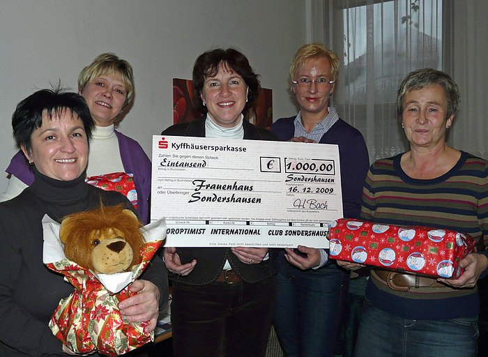 Mit dem Spendengeld unterstützen die 21 Mitglieder des SI Club Sondershausen bedürftige Frauen und deren Kinder, die Opfer von häuslicher Gewalt wurden und eine Zuflucht im Frauenhaus gefunden haben. Derzeit leben 3 Frauen und 4 Kinder in der anonym gehaltenen Unterkunft. In diesem Jahr waren es 78 Frauen und 93 Kinder, die im Frauenhaus eine vorübergehende Bleibe fanden. Sie haben oft jahrelange physische und psychische Gewalt erlebt und landeten zum Teil auch schon mehrfach mit schweren Verletzungen in der Notaufnahme. Tendenz steigend.