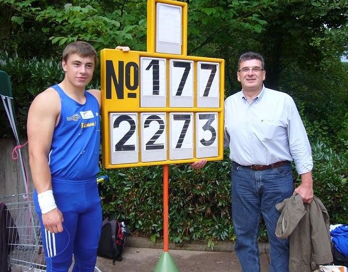 Weltrekordhalter Udo Beyer und David Storl im August in Osterode