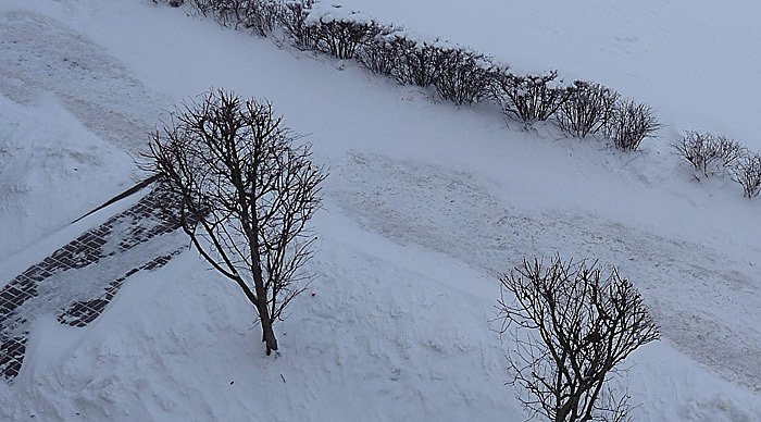 Der trockene leichte Schnee wurde von den Höhen des Berges (der Stadtteil Östertal liegt sinnigerweise auf einem Berg) in die tieferen windärmeren Gebiete geblasen, so dass einige Straßenzüge weiter der Schnee 30 bis 50 cm und mehr vor der Haustür lag.