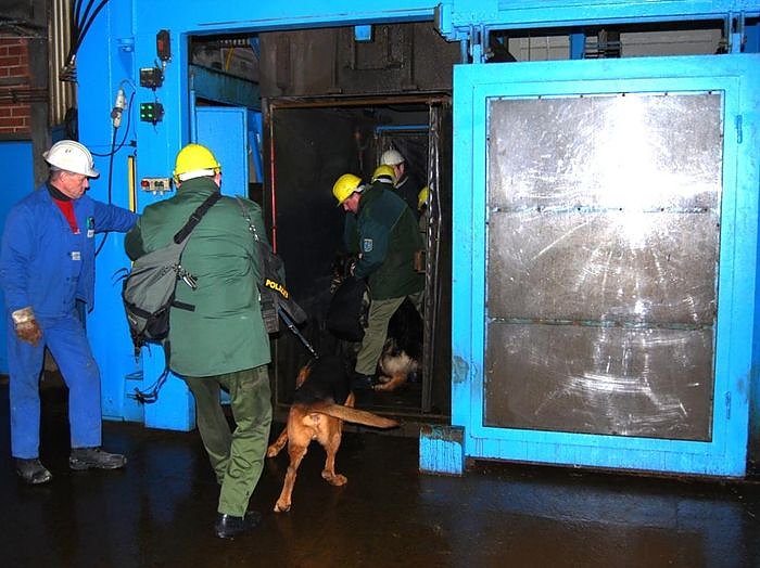 Um all das auszuprobieren und zu trainieren, fuhren elf Hundeführer mit ihren Hunden und Ausbildern in das Erlebnisbergwerk ein. Zwar spürbar nervös, aber ohne Probleme meisterten die Tiere die erste Hürde, die Seilfahrt. Egal, ob in der Strecke, im großen Konzertsaal oder im übrigen Veranstaltungsbereich, die Diensthunde lösten alle an sie gestellten Aufgaben. Unbeeindruckt von der ungewohnten Umgebung und den vielen neuen Gerüchen fanden sie versteckten Sprengstoff, abgelegtes Rauschgift und vermisste Personen. Selbst winzige Blutstropfen waren für den Leichensuchhund keine allzu große Herausforderung.