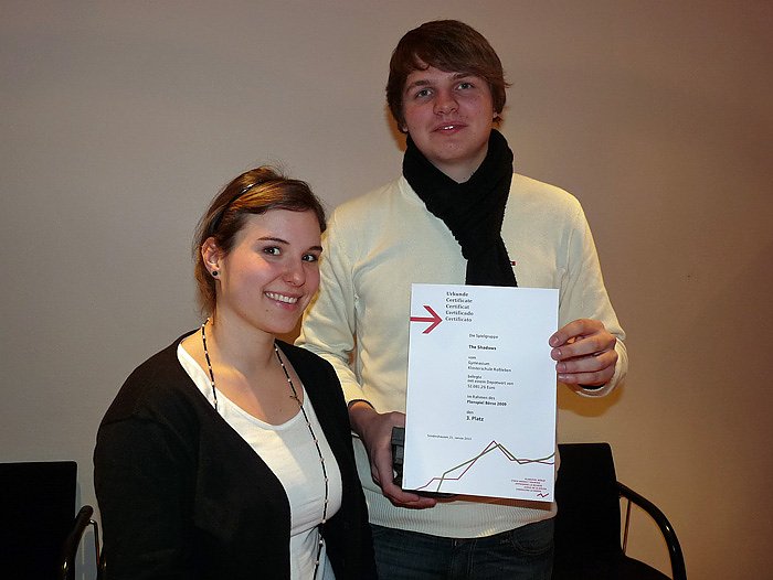 The Shadows (Bild unten) vom Gymnasium Roßlebener arbeiteten sich einen Depotwert von 52.081,26 Euro.