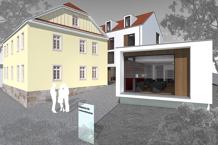 Nicht zuletzt würde die "Wippertal" WBG mbH endlich einen langfristigen Nutzer für das Anwesen haben. Eine Verwirklichung des Vorhabens konnte als realistisch eingestuft werden, da die Landesmusikakademie als Bildungseinrichtung berechtigt war von Fördermitteln aus dem Bundesförderprogramm Konjunkturpaket II zu profitieren. Diese wurden vom Thüringer Ministerium für Bildung, Wissenschaft und Kultur in Aussicht gestellt. Nach weiteren Absprachen ergab sich folgende Konstellation: Eine denkmalgerechte Sanierung des Hauses Lohberg 11 sollte die Voraussetzung zum Sitz der Verwaltung sowie des Empfangs der Landesmusikakademie schaffen und ein hinter dem Gebäude liegender Neubau mit etwa 30 Zimmern und Cafeteria Unterbringung und Versorgung gewährleisten.