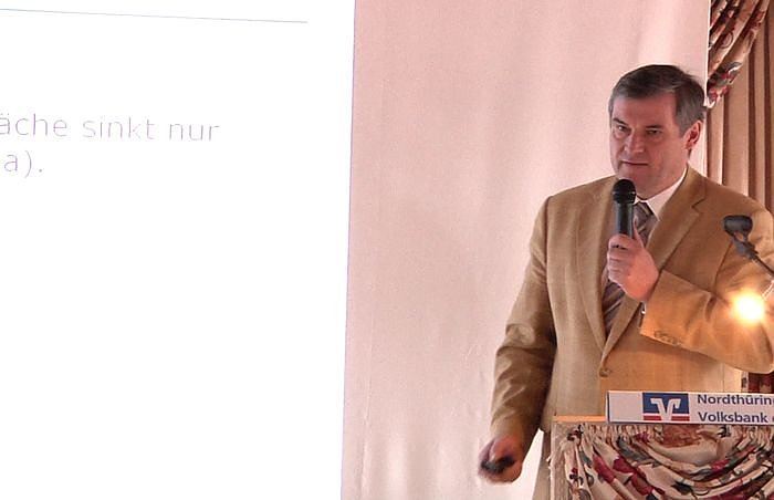 Volksbank-Vorstand Peter Herbst begrüßte fast 100 Landwirte aus den Landkreisen Nordhausen, Sömmerda und dem Kyffhäuserkreis. Und er konnte den Thüringer Landwirtschaftsminister Jürgen Reinholz (CDU) willkommen heißen. Reinholz zeichnete aus Sicht des Freistaates ein Bild der Thüringer Wirtschaft und insbesondere der Landwirtschaft.