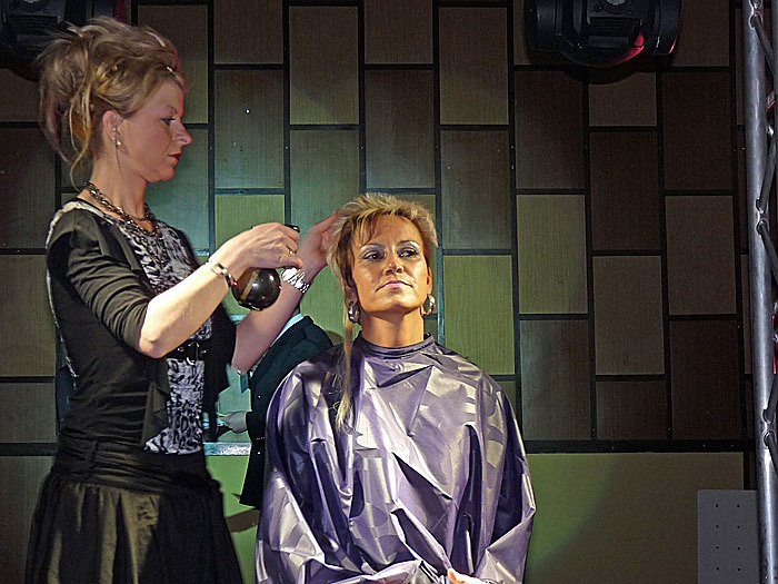 Gemeinsam teilte man sich mit dem Friseursalon "Trend" und der Geschäftsführerin Hannelore Rauch (Johann-Karl- Wezel-Str. 49) die Bühne. Teils parallel zur Modenschau erfolgte ein Schaufrisieren und auch die neusten Trends beim Make-up wurden gleich mit vorgestellt.