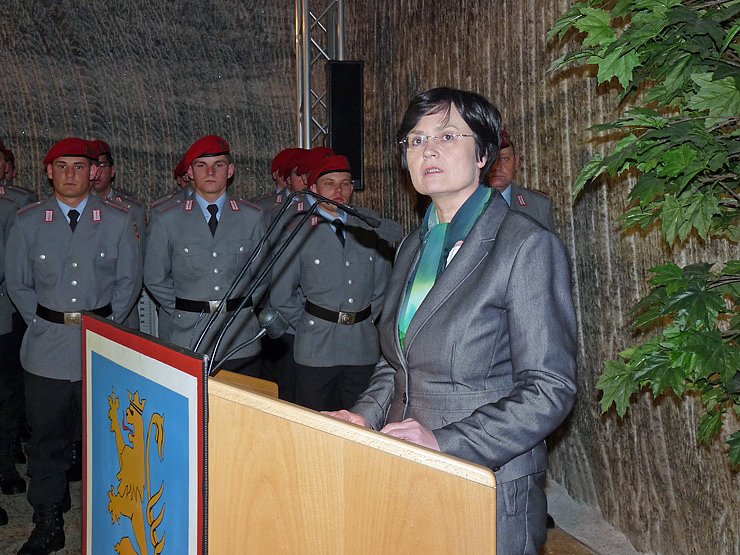 Ministerpräsidentin Christine Lieberknecht (CDU) bedankte sich zuerst für das große Bevölkerungsinteresse an diesem Gelöbnis. Der Dank ging aber auch an die beiden Geschäftsführer der Glückauf Sondershausen Entwicklungs- und Sicherungsgesellschaft mbH (GSES) Jaap van Engers und Ralph Hasse, die in einer großen logistischen Meisterleistung nicht nur die Rekruten und Offiziellen ins Bergwerk brachten, sondern auch die viele Angehörigen.