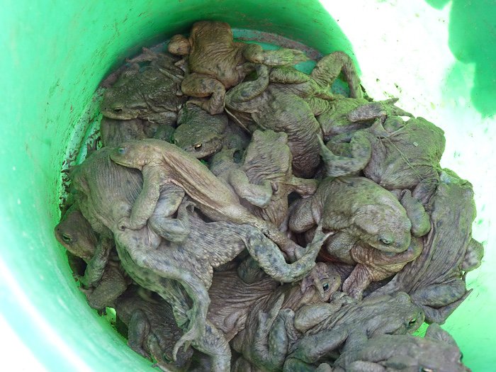 Bereits 120 Kröten wurden umgesetzt, allein heute früh waren es schon 40, obwohl Enno Kriese erst die Hälfte der Eimer am Hammateich kontrolliert hatte. Mit der Kamera hat kn mal zugeschaut.