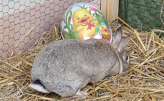 Was da drin ist? Keine Ahnung, der Osterhase sprach etwas undeutlich. Nachschauen konnte man auch nicht, er bewachte seinen Schatz. Vielleicht ist ein dicker Scheck für den Bürgermeister drin, der die Verluste aus dem Steuerausfall ersetzt? Müssen wir doch noch mindestens bis Ostern warten, ehe das Geheimnis gelüftet wird.