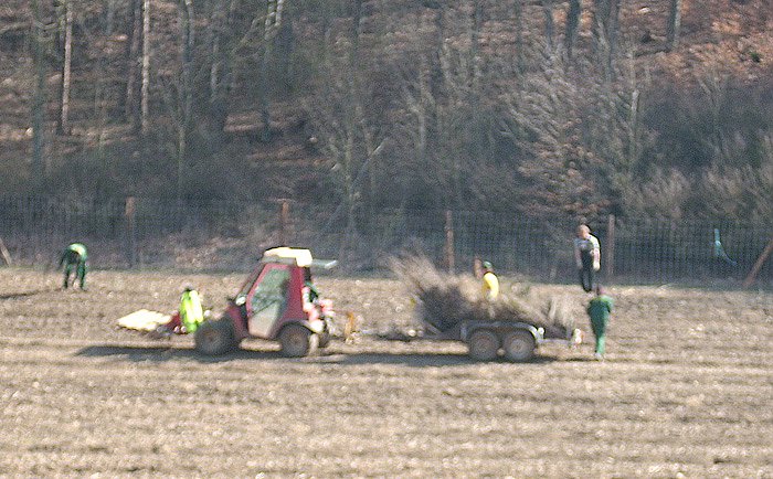Ach wenn mit moderner Technik die Pflanzlöcher gebohrt werden, setzen selbst zählt trotzdem zu den schweren Arbeiten. Und 11.848 Pflanzungen müssen erst mal realisiert werden.