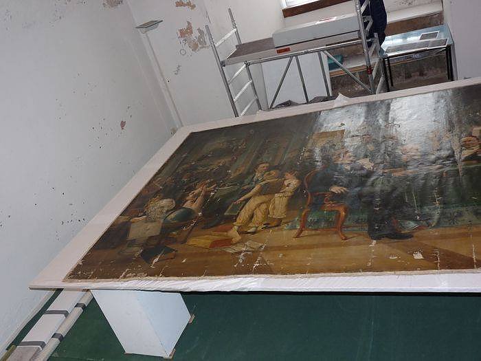 Danach erhielt das Gemälde seinen Platz in der Aula unserer Schule (damals Höhere Mädchenschule), wo es bis Ende der 60er Jahre ausgestellt war. Aus Gründen der Renovierung der Aula wurde das großformatige Bild unfachmännisch abgenommen und gelagert. Erst einige Jahre später wurde es dem Schlossmuseum zur sachgerechten Aufbewahrung überantwortet wo es viele Jahre, auf einer Gemälderolle gesichert, aufbewahrt wurde.