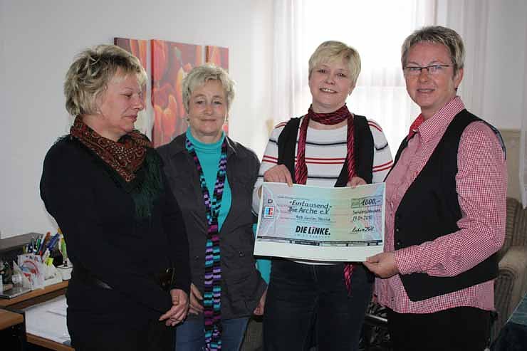 Autor: khhHeute nun konnte Kersten Steinke (im Bild re.) ihr Versprechen einlösen und einen Scheck in Höhe von 1.000 Euro an die Arche e.V. übergeben. Das Geld kommt aus dem Spendenfond der Bundestagsfraktion DIE LINKE, gespeist aus den jährlichen Diätenerhöhungen, welche die LINKE nicht mitträgt.
