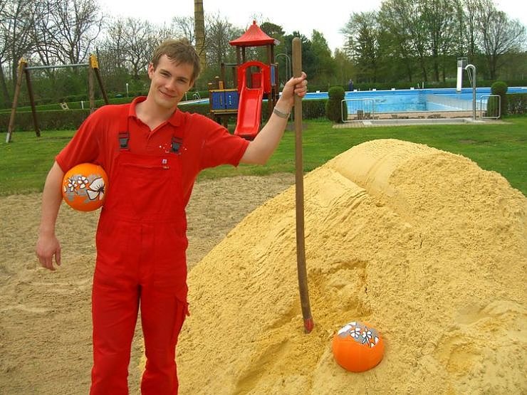 Im Salzaquellbad wird neben der Instantsetzung des Beckenkopfes, der Beachvolleyballplatz erneuert. Der Sand hat ganz besondere Qualität. Er ist für die Verwendung extra gewaschen, klebt nicht bei Feuchtigkeit und vor allem färbt er nicht ab., so Frensel.