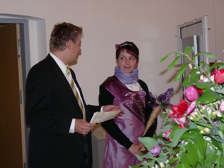 Die Gästeschar war nicht nur zahlreich, sondern auch prominent, denn bis zum Hochadel waren Gäste dabei. Schließlich hatte sich Bad Frankenhausens Bürgermeister Matthias Strejc (SPD) zur Verstärkung bei der Begrüßung die am Freitagabend frisch gekrönte neue 18. Fliederkönigen Isabell I. eingeladen. Aber nicht nur die neue Regentin Bad Frankenhausens war gekommen, die übrigens traditionell erst in den nächsten Tagen ihr unverwechselbares Outfit bekommen wird, an dem jetzt mit Hochdruck gearbeitet wird.