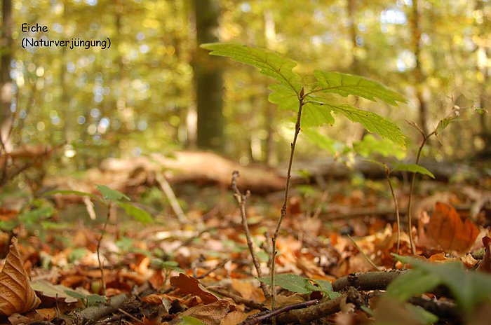 "Wir nutzen die Wiederaufforstungen für den Waldumbau vom Nadelholz hin zu artenreichen Laubmischwäldern" konnte Revierleiter Jens Bracke an einer gezäunten Fläche feststellen. Hinter dem Zaun stehen junge Eichen, gemischt mit Vogelkirsche, Elsbeere und Speierling. Bevor die Bäume aber gesichert angewachsen sind, ist viel Mühe für Pflanzung und Grasmähen notwendig. Ständig Überwacht wird die Population der Mäuse, die kleinen Nager können jungen Bäumen stark zusetzen.