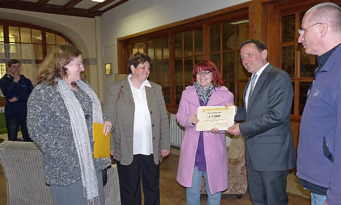 Heute nachmittag war es soweit, trotz Terminstress (es ging in Erfurt am Vormittag auch um die Finanzen) war Dr. Holger Poppenhäger mit einem Förderbescheid in Höhe von 1.000 Euro zur Projektwoche nach Bad Frankenhausen gekommen. Mit den Landtagsmitgliedern Gudrun Holbe und Dorothea Marx (SPD) und Bad Frankenhausens Bürgermeister Matthias Strejc erhielt die Sache auch das notwendige politische Gewicht. Den Förderbescheid nahm Vereinsvorsitze Mandy Schiefelbein für den Verein entgegen.