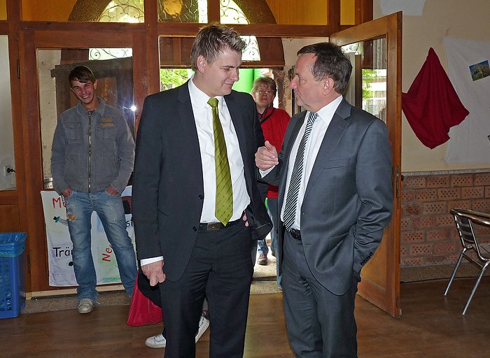Bürgermeister Matthias Strejc (Bild oben im Gespräch mit dem Minister) informierte, dass durch Kooperation in Esperstedt der nicht so gut besuchte kommunale Jugendklub, jetzt mit dem christlichen Jugendclub Alte Post e.V. eine bessere Jugendarbeit gewährleistet werden kann. Im Gespräch mit kn sagte Minister Dr. Hoppenhäger, warum ihm dieser Termin als Justizminister so wichtig war. Jetzt schon um die Jugendlichen kümmern, damit sich die Justiz nicht später die Jugendlichen kümmern muss.